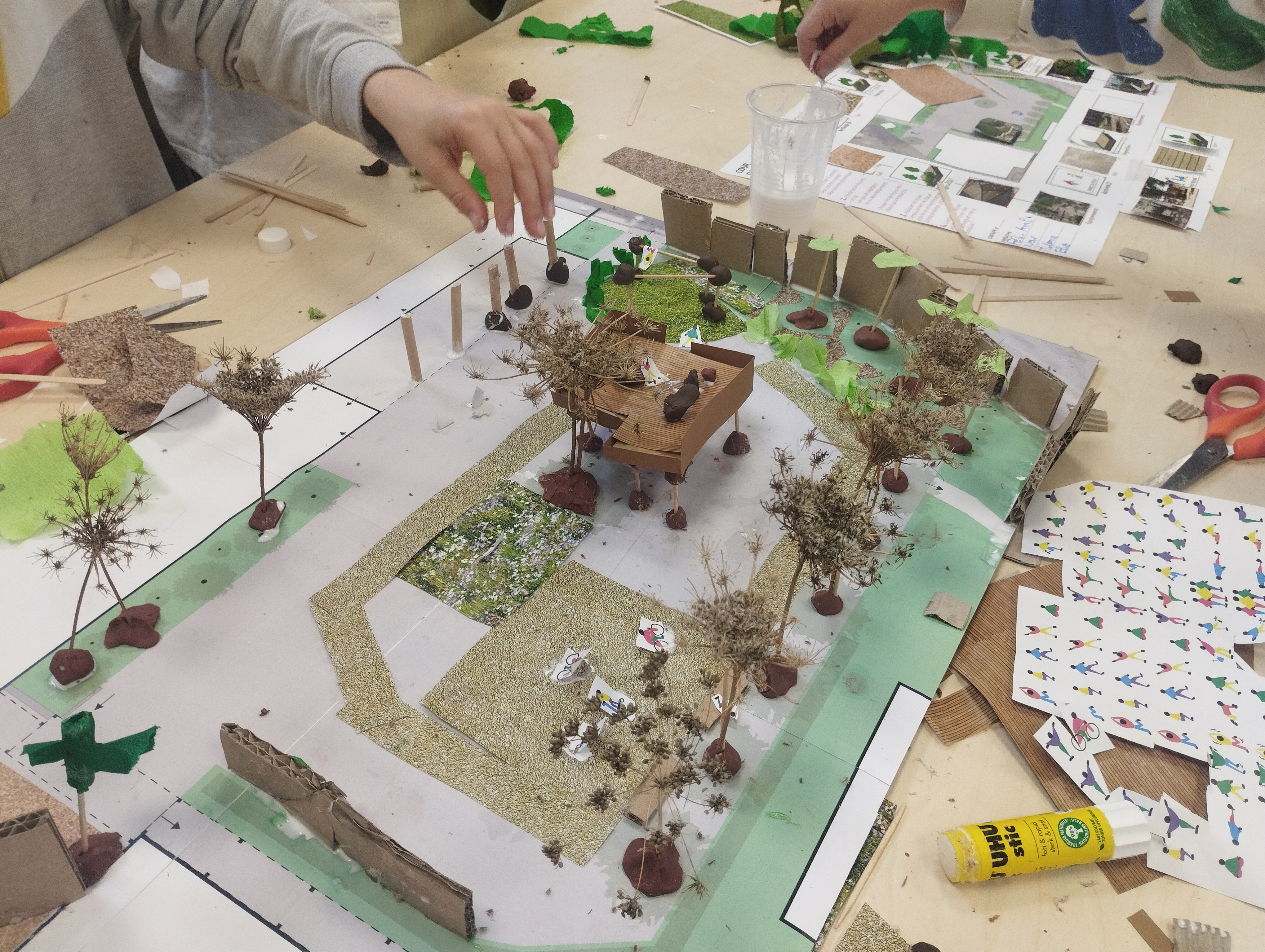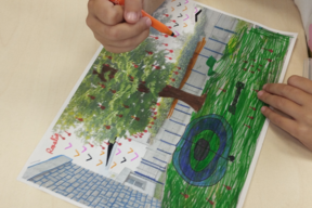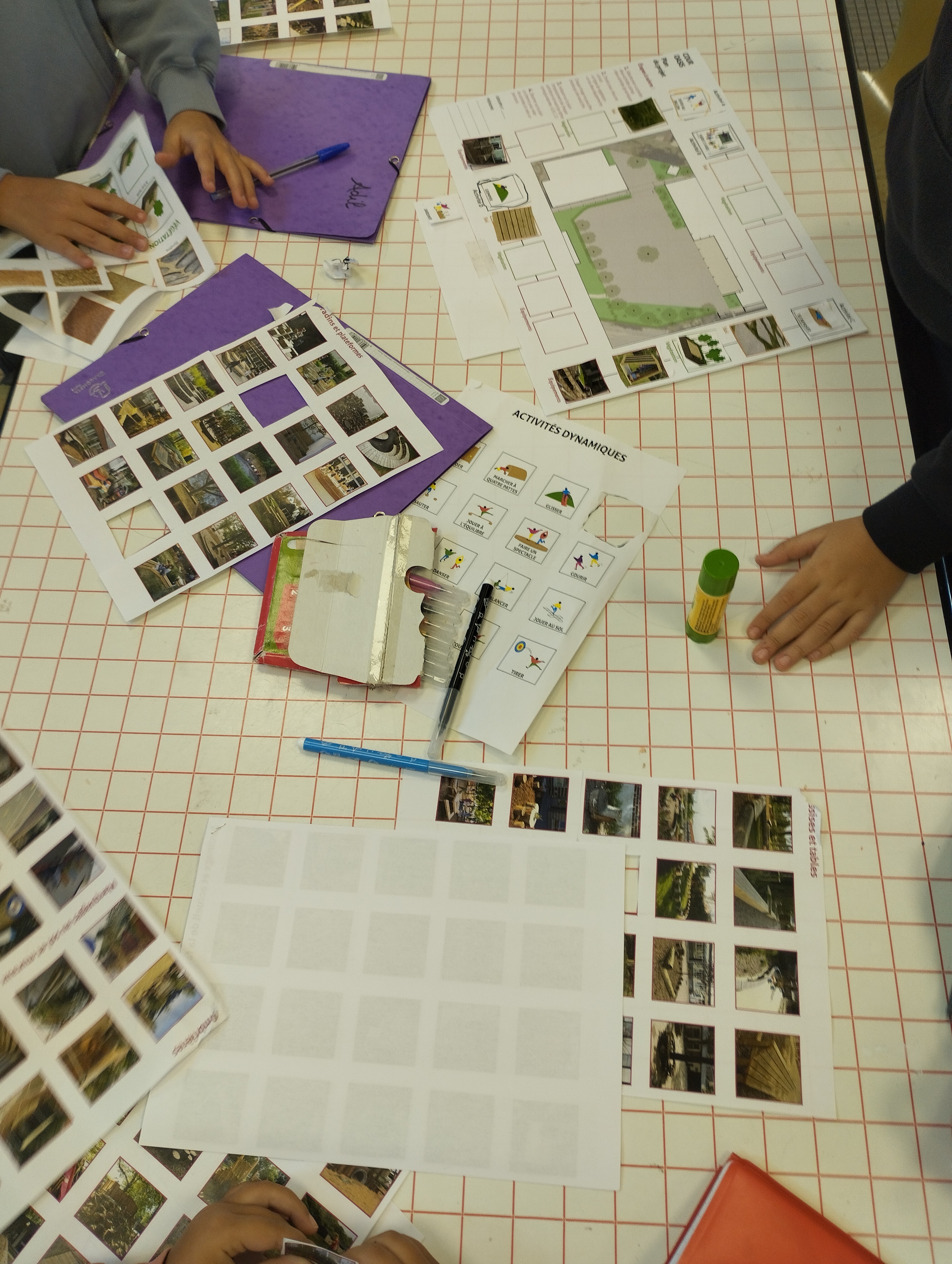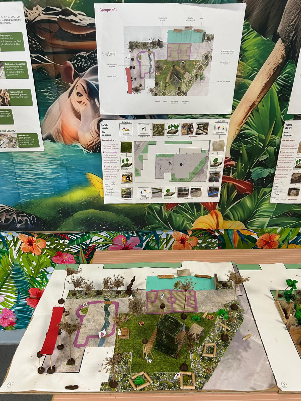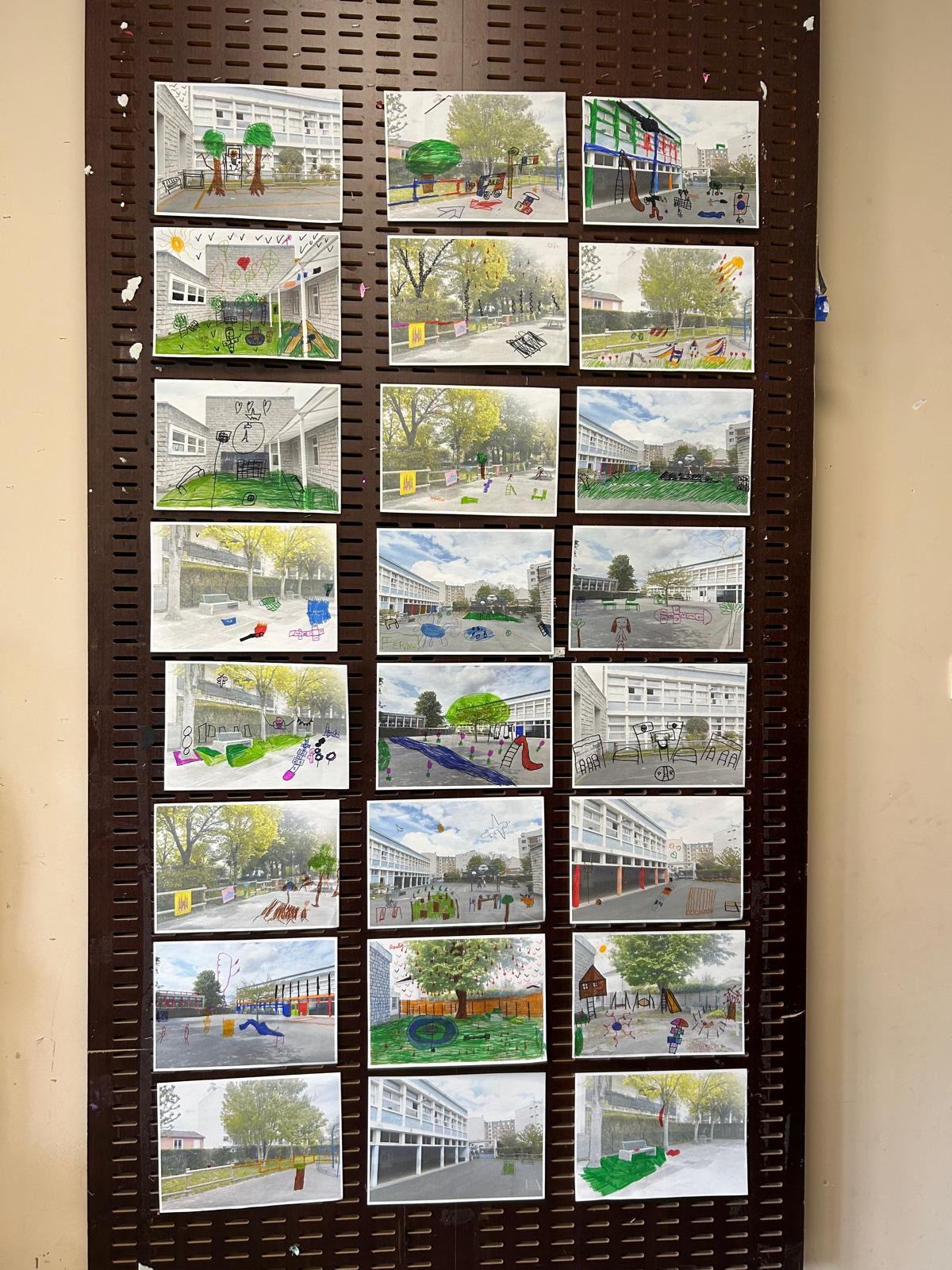 - Les écodélégué·e·s participent à six ateliers de concertation. Ils et elles sont invité·e·s à diagnostiquer leurs espaces de jeux, à visiter un lieu inspirant, à exprimer leurs besoins et enfin à créer des maquettes de leur future cour. Ces propositions sont ensuite exposées et diffusées au sein de l’école. Une consultation est organisée auprès des classes, du personnel et des parents d’élèves pour déterminer les éléments les plus appréciés.