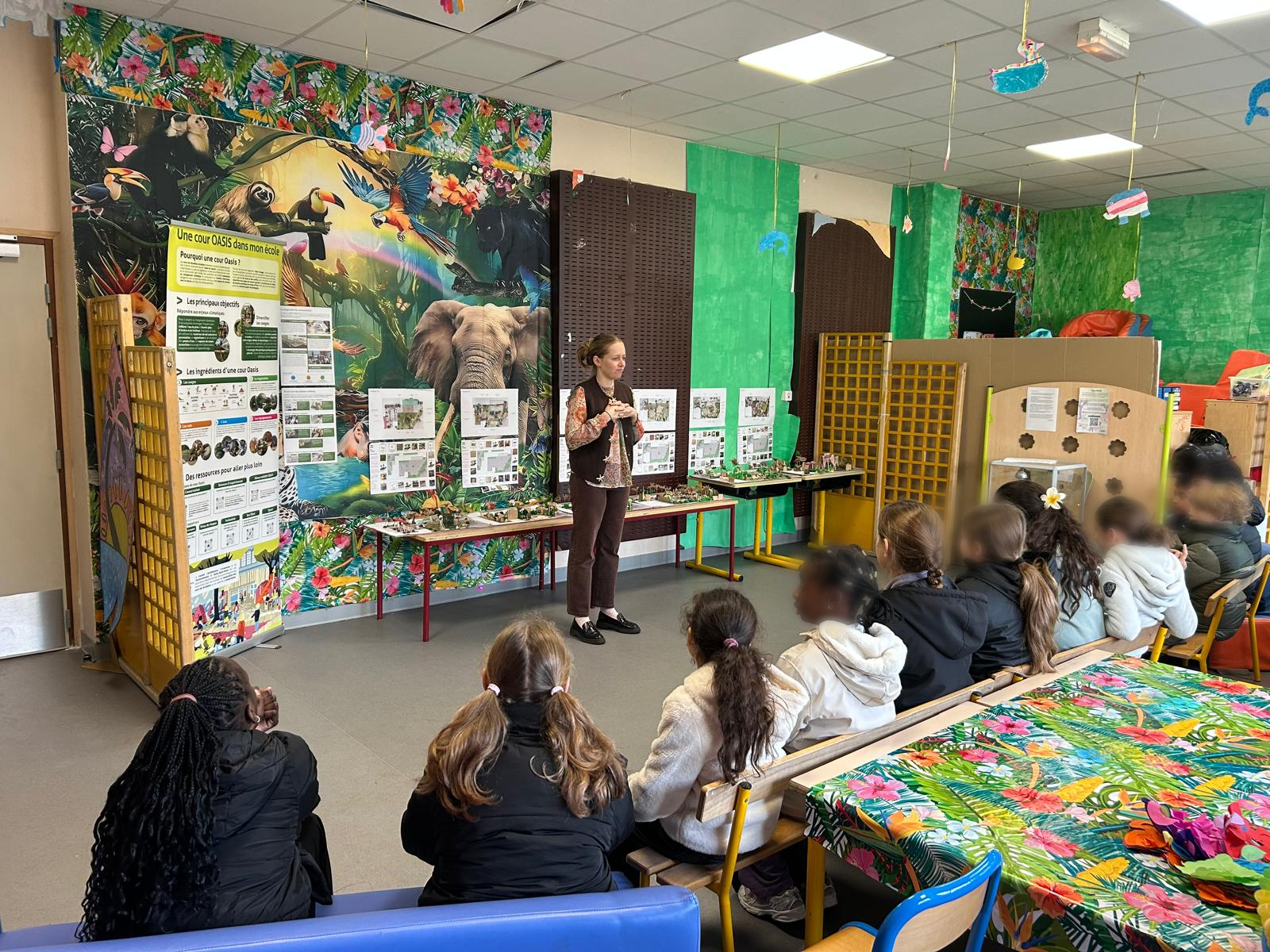 - Quatre ateliers invitent le personnel à réaliser un diagnostic partagé de la cour, à découvrir une cour OASIS déjà réalisée, à analyser deux scénarios programmatiques intégrant les résultats du vote et à sélectionner des références d’équipements adaptées.