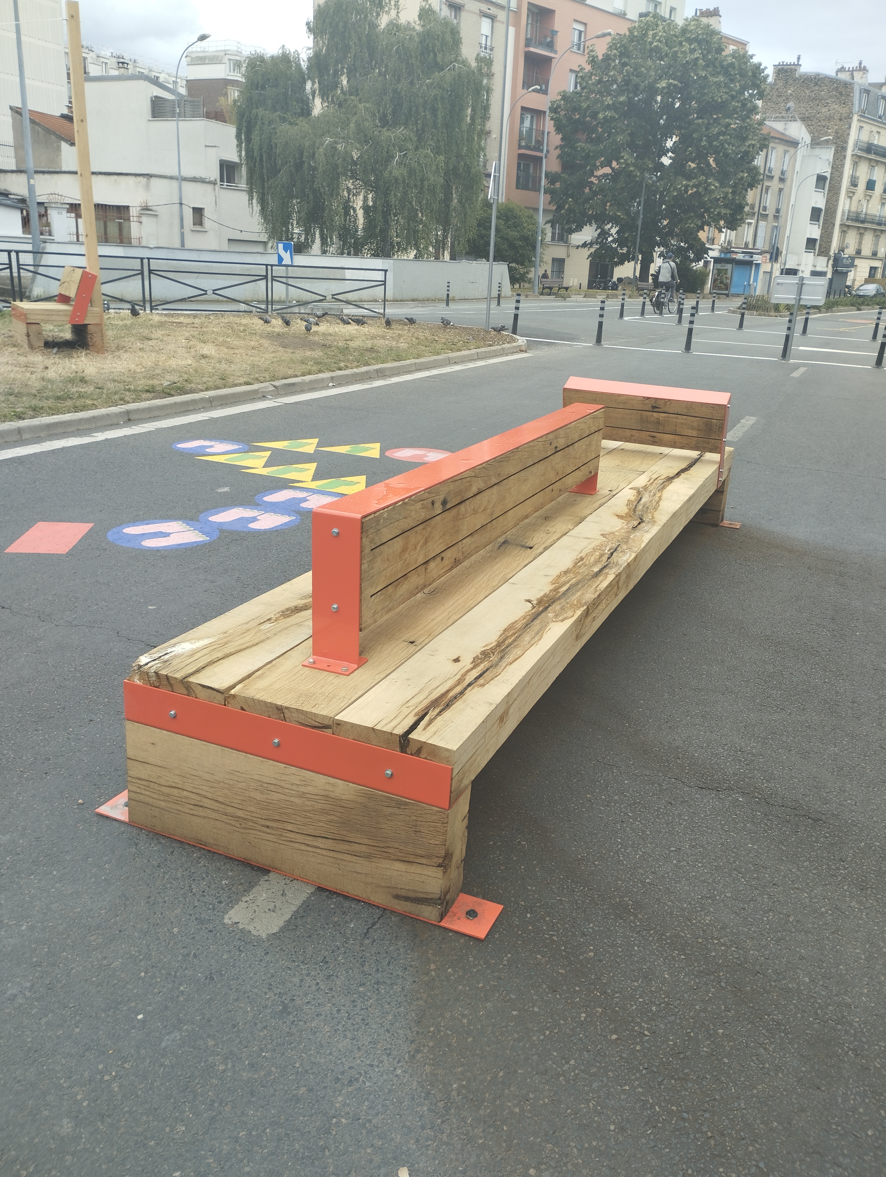 C’est dans ce contexte de mutation urbaine que s’inscrit le projet de requalification de voirie. Dès l’été 2023, une zone de rencontre bus-piéton-cycliste est créée sur le barreau Sud, tandis que le barreau Nord est mis en double-sens. Afin d’aider à la conception de la RD22 définitive, la Ville, l’EPT et le Département souhaitent intégrer les habitant.e.s dans l’élaboration du projet et tester des aménagements sur l’espace public. YA+K et ses co-traitants ont été missionnés pour proposer des premières expérimentations temporaires au niveau du barreau sud et du parvis arrière de la patinoire.