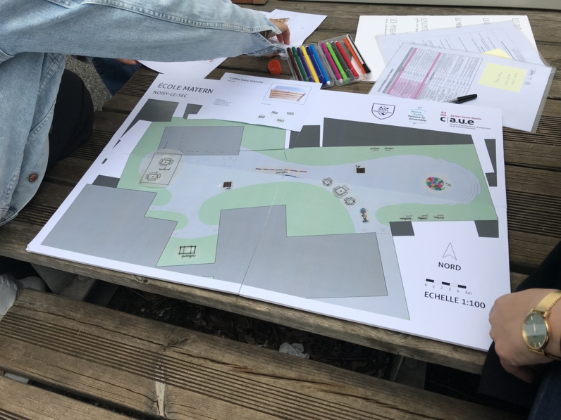 Dans le cadre du dispositif « Notre école faisons là ensemble » porté par l'Éducation nationale, le CAUE de Seine-Saint-Denis accompagne quatre écoles maternelles de la Ville de Noisy-le-Sec.