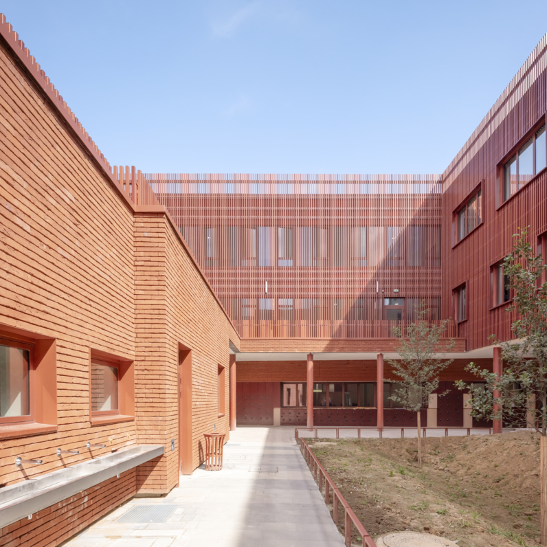 Le bâtiment se caractérise par une géométrie rationnelle et l'utilisation de matériaux durables. Le béton armé est utilisé pour les noyaux et les plateaux éducatifs. Pour les équipements sportifs, la structure est en bois, avec une couverture en toile tendue. Le socle est constitué d'une empreinte minérale en briques. Les façades sont revêtues de bardages en acier et de ventelles faisant office de brise-soleil sur tout le périmètre du bâtiment, garantissant à la fois une protection solaire et une préservation de l’intimité des élèves. L’ensemble des aménagements paysagers est réalisé en serrurerie, imitant la teinte des briques.