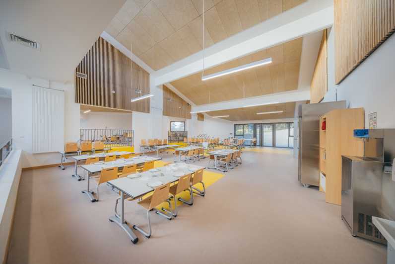 Ainsi depuis celui-ci sont facilement accessibles : les locaux du périscolaire, le pôle administratif et encadrement, les salles de motricité, l’accès aux classes (existantes et créées).