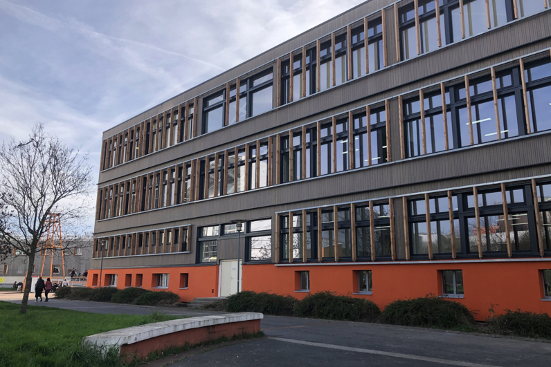 La conception pour la réhabilitation est guidée par la nécessité prioritaire d’apporter un confort d’été et d’hiver les plus frugaux possibles, tout en garantissant les performances avec l’assistance des systèmes de ventilation, de chauffage et de suivi des consommations (garantie de performance sur 20 ans, E=0, baisse des consommations de 60%, concentration de CO2 maximale de 800ppm dans les salles de classe).