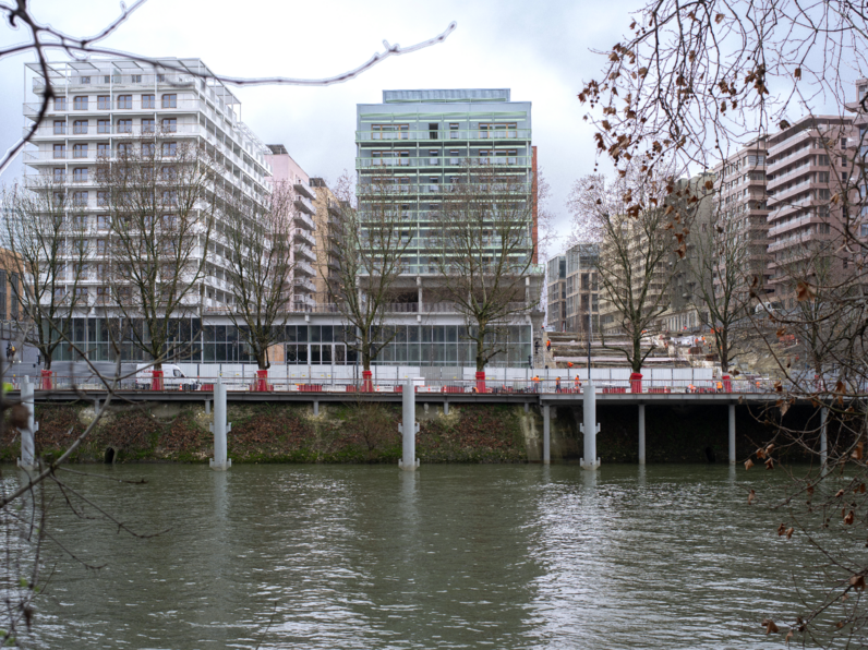 Le projet qui s’inscrit dans le plan urbain réalisé par Dominique Perrault a été conçu par une équipe d’architectes, paysagistes, bureaux d’études et artistes sous la coordination de l’agence uapS, également architecte concepteur du socle et de quatre bâtiments. En tant que coordinateur du secteur, l’agence uapS a travaillé avec l’équipe de maitrise d’œuvre le principe de similarité et variations des éléments architecturaux pour assurer une cohérence esthétique tout en introduisant des nuances distinctives entre les différents bâtiments.