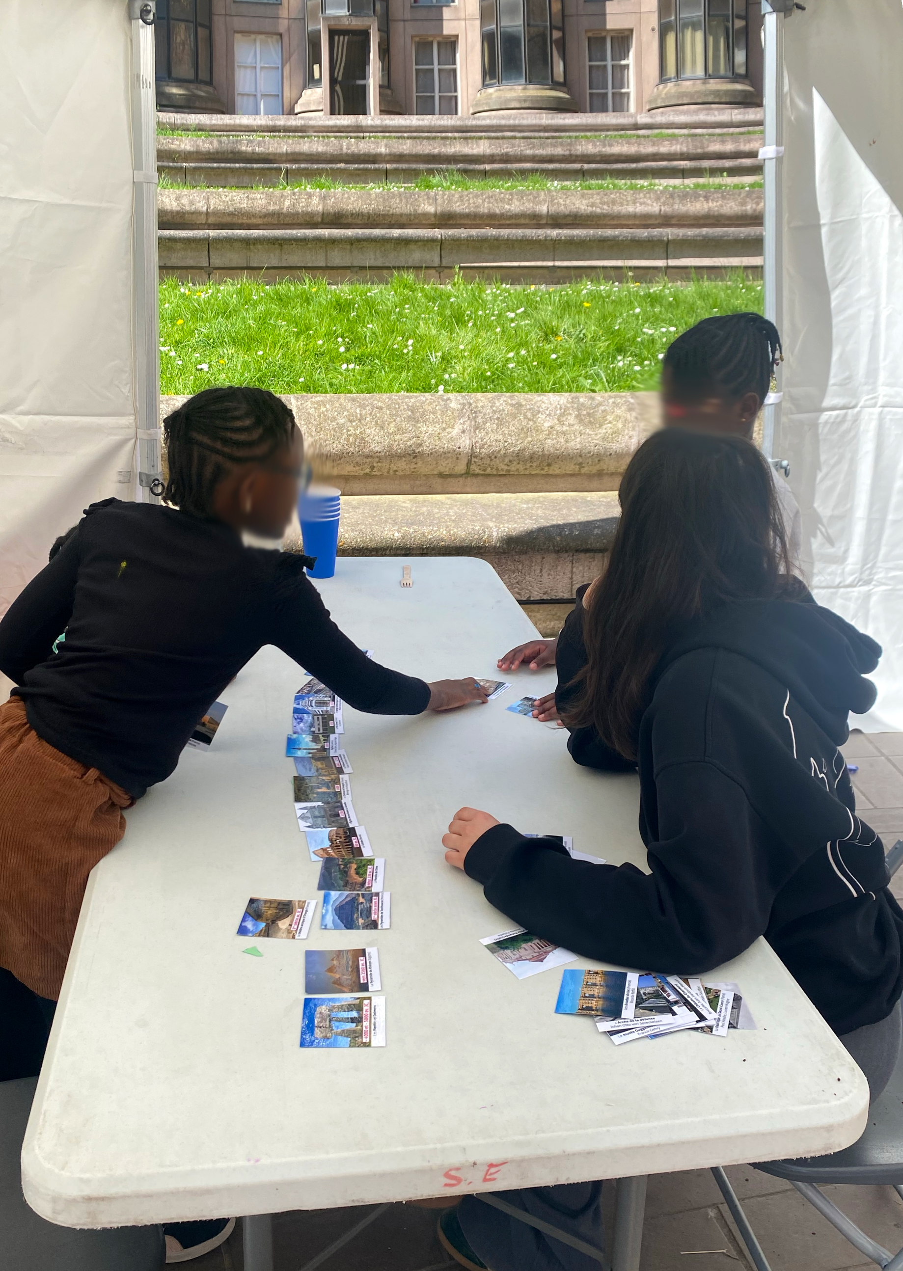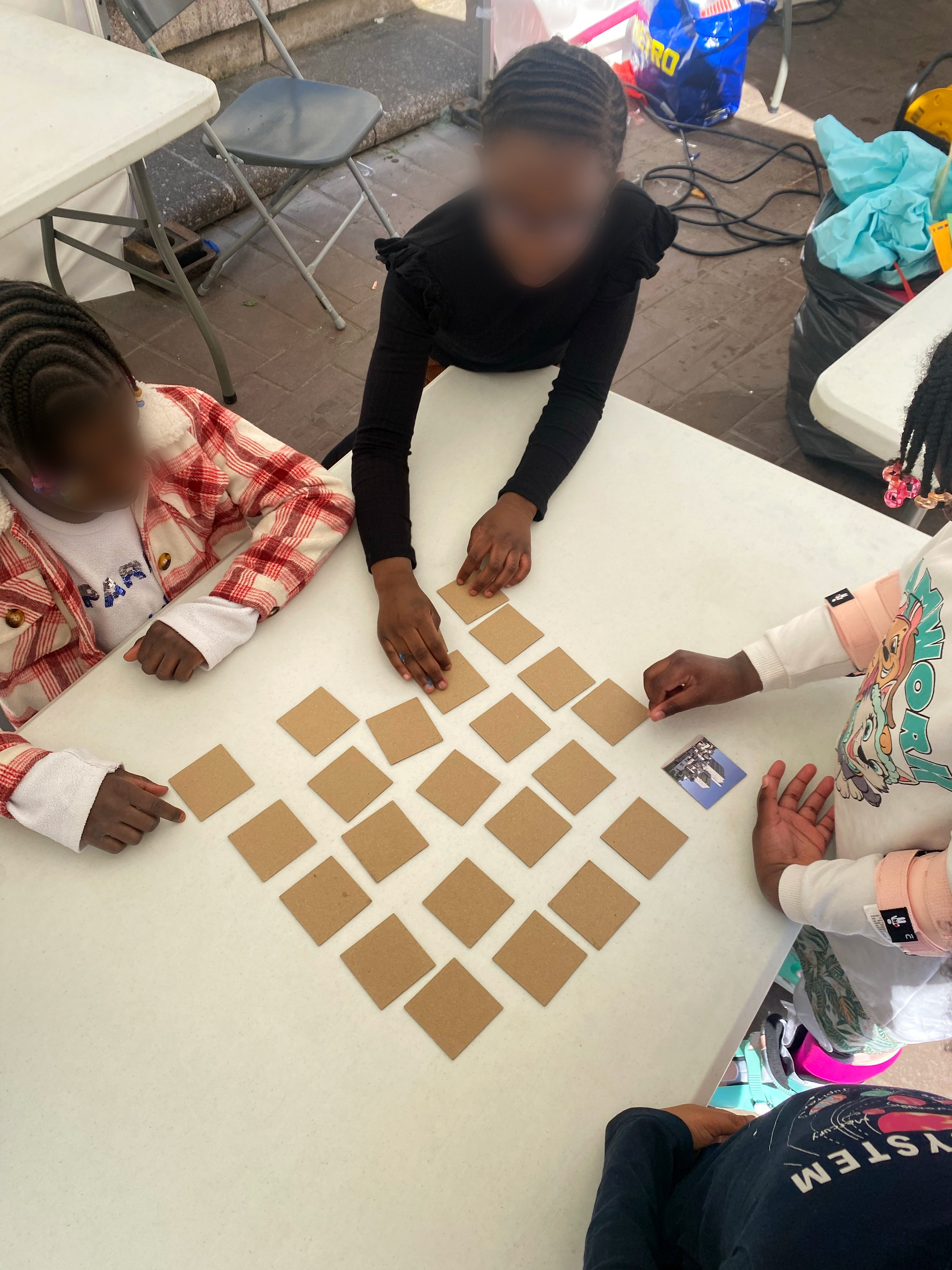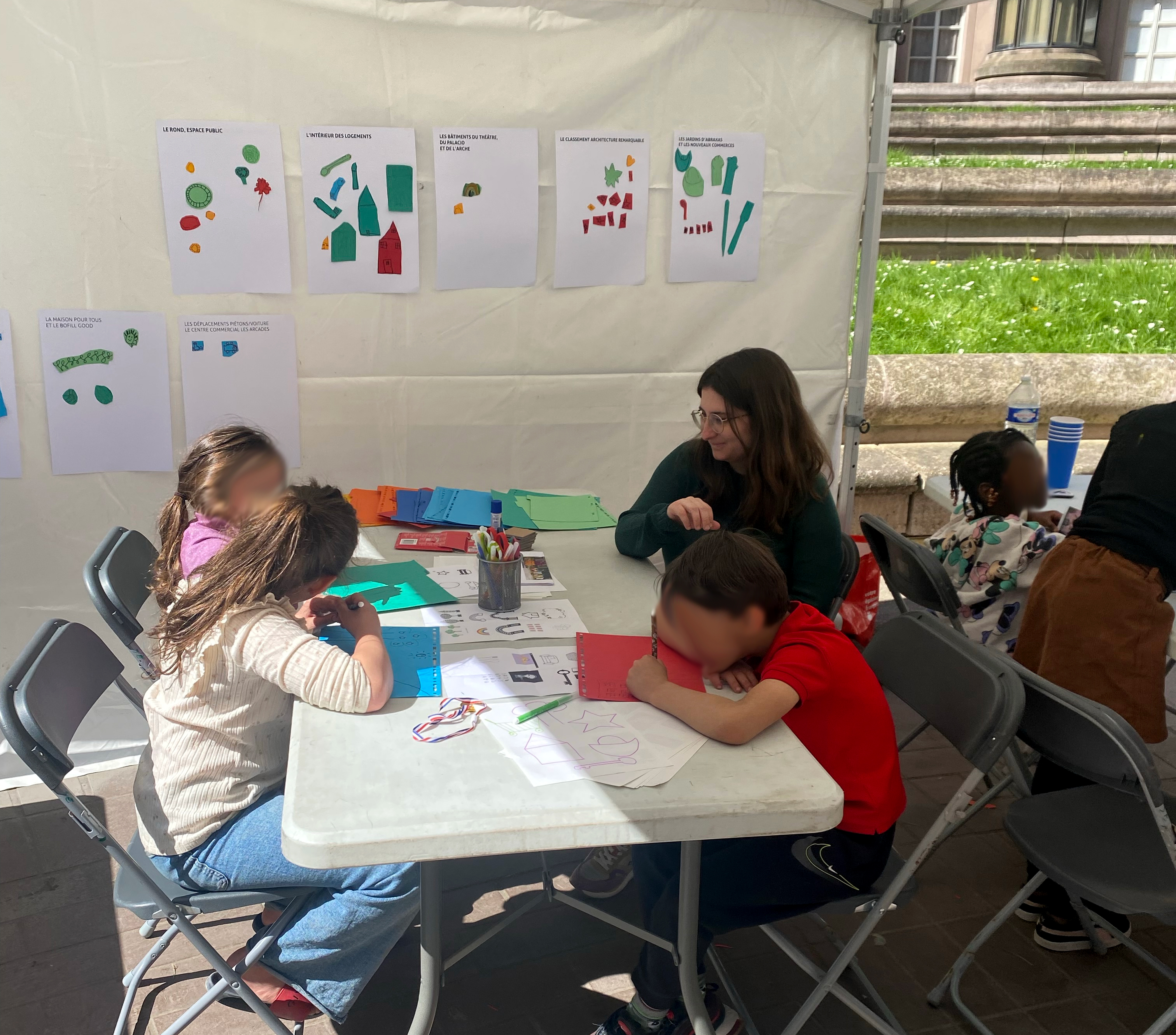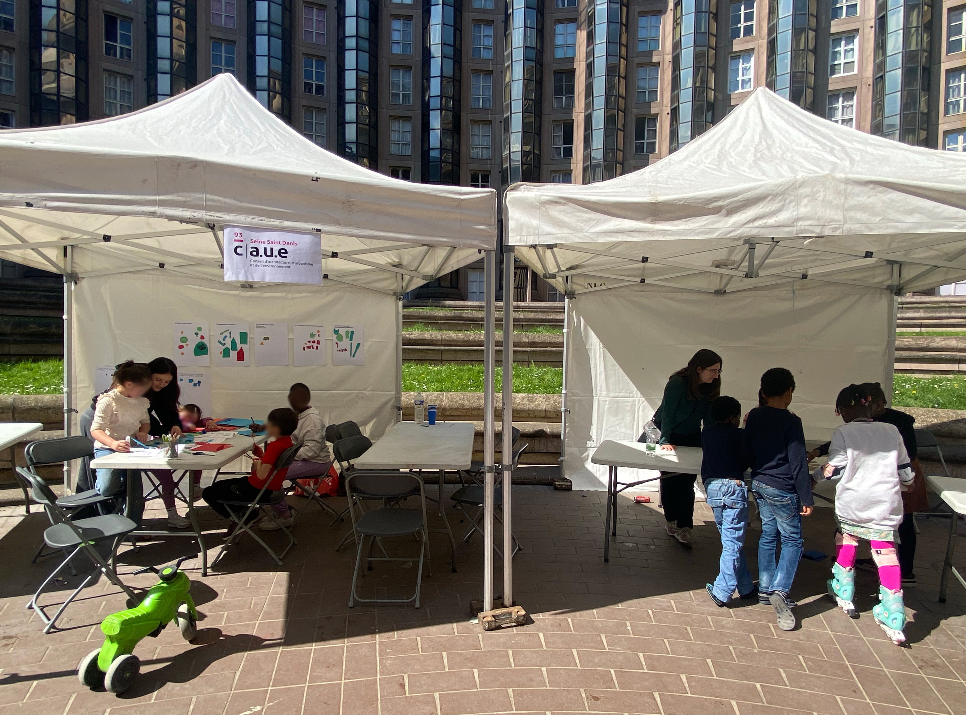 Lors de l’après-midi d’inauguration des travaux, le CAUE 93 a animé un stand dédié à la découverte de l’architecture à travers des jeux de sensibilisation destinés à un jeune public :