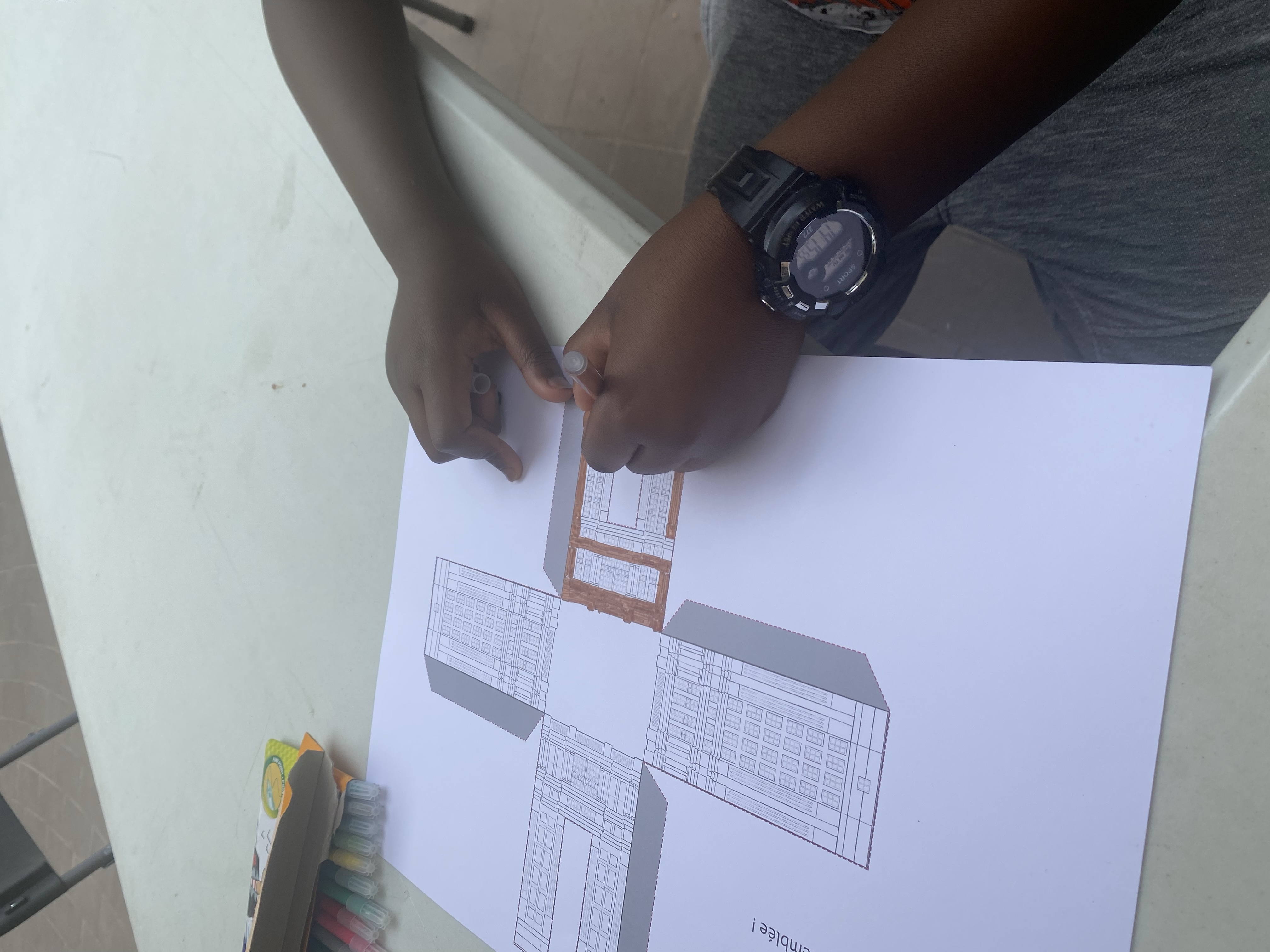 - Construis ton arche : À partir d’un patron à découper, chacun·e a pu créer une arche miniature d’Abraxas, support pour découvrir cette typologie architecturale singulière. Cette activité maquette est disponible dans les documents à télécharger.