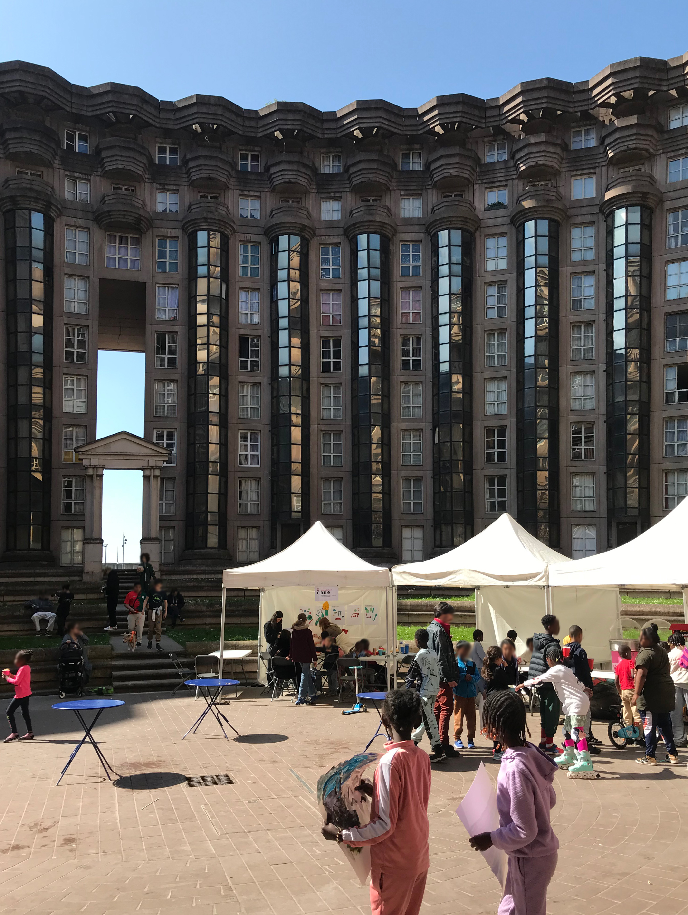 À l’occasion du lancement des travaux de rénovation du Palacio et de l’édition 2025 du festival Regard Neuf 3, le CAUE a mené plusieurs actions de médiation architecturale aux Espaces d’Abraxas en 2025, en partenariat avec Sequens et CDC Habitat. Deux temps de rencontre ont rythmé ce programme, mêlant ateliers pour enfants, visites guidées et dispositifs participatifs.