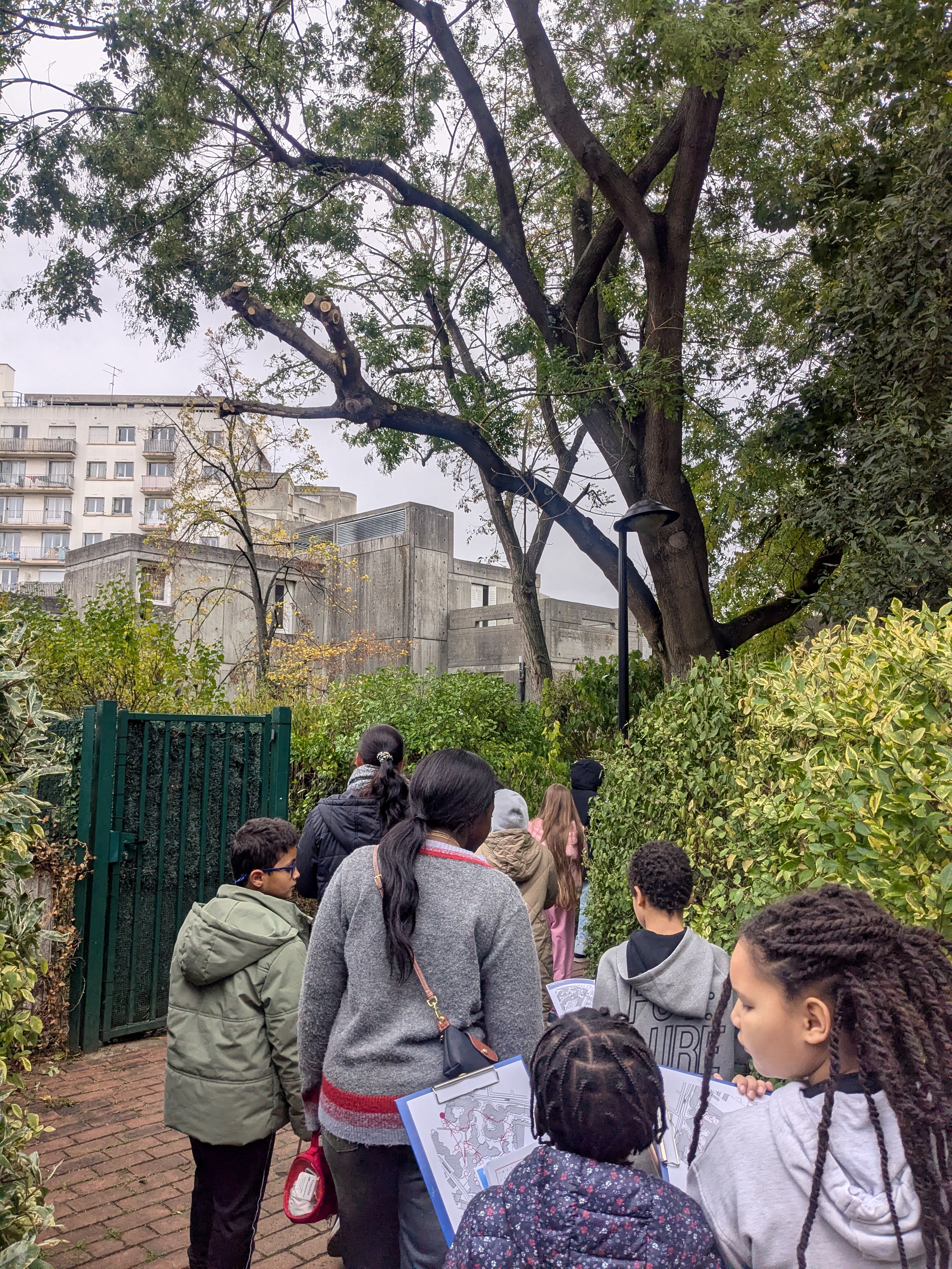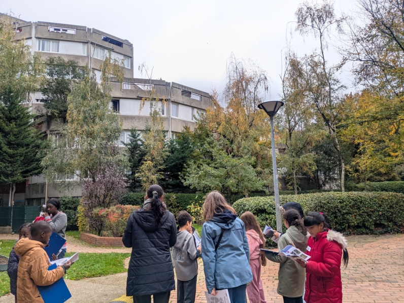 Le long d’une parcours d’1h30, des deux équipes d’enfants de 6-10 ans ont recherché un panel d’une soixantaine d’éléments photographiés et les ont localisés sur un plan. Ils ont été accompagnés d’une architecte du CAUE qui les a invités à catégoriser ces éléments observés afin de mettre du sens sur ce qu’ils observaient. Deux séances sur la période des congés scolaire d’automne ont été animées par le CAUE.