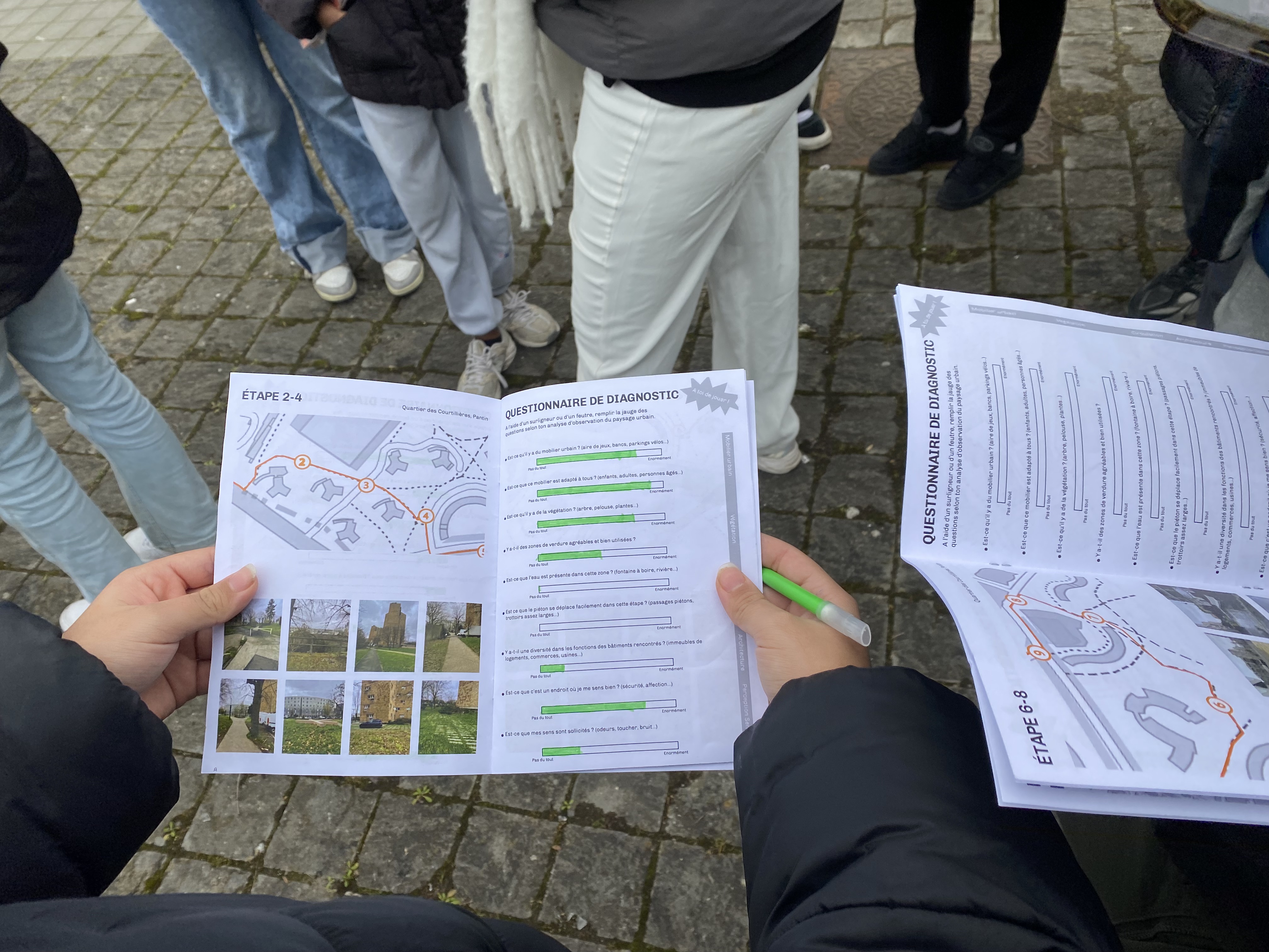 Le repérage spatial mené par les élèves munis d’un carnet pour recueillir leurs sensations, leur ressenti et quelques anecdotes a permis l’identification de plusieurs potentialités en termes d’usages et d’aménagement. Ils ont eu l’occasion lors de ce parcours de s’initier à un diagnostic sensoriel et visuel des espaces urbains.