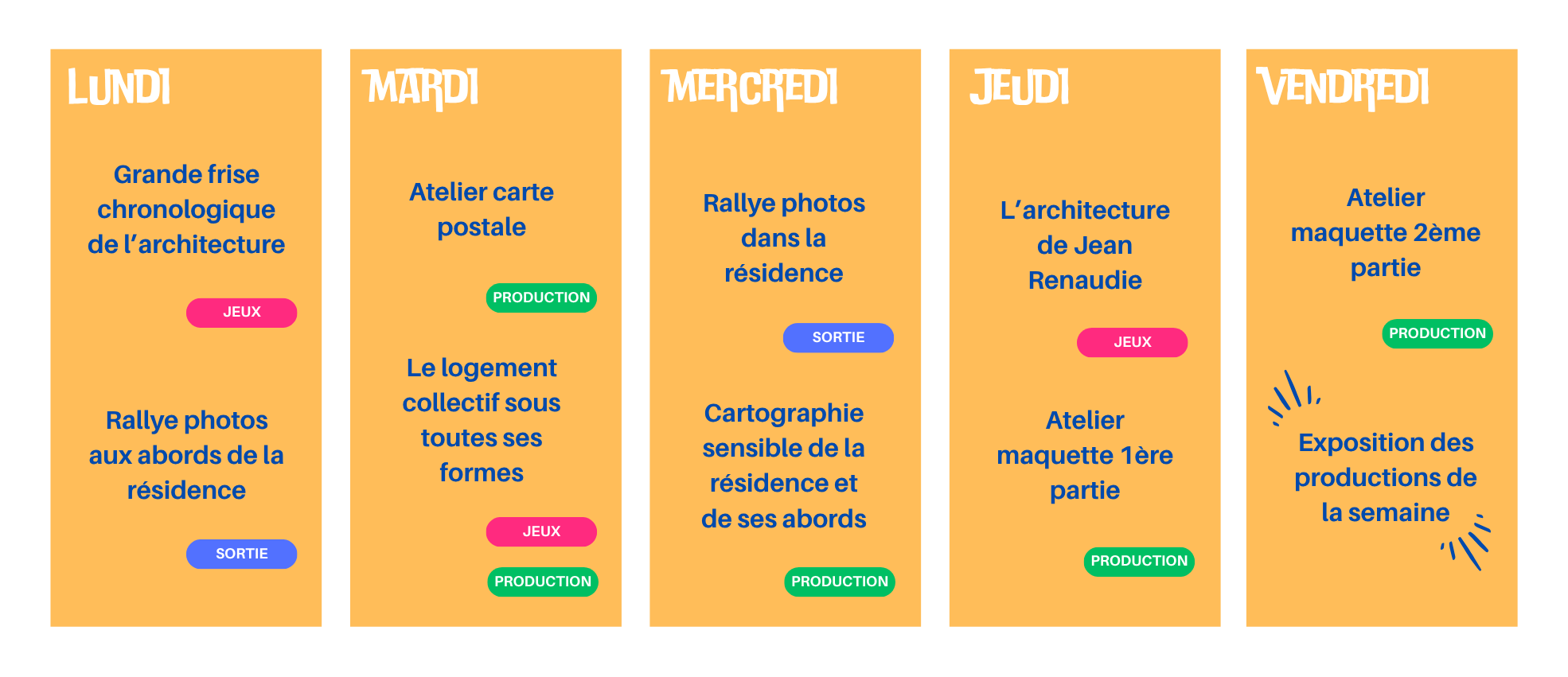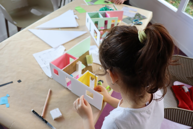 Durant cinq jours, les enfants ont découvert l’architecture à différentes échelles : de la vision d’ensemble de ville jusqu’à l’intimité des logements, ce zoom progressif a été le fil conducteur du stage.