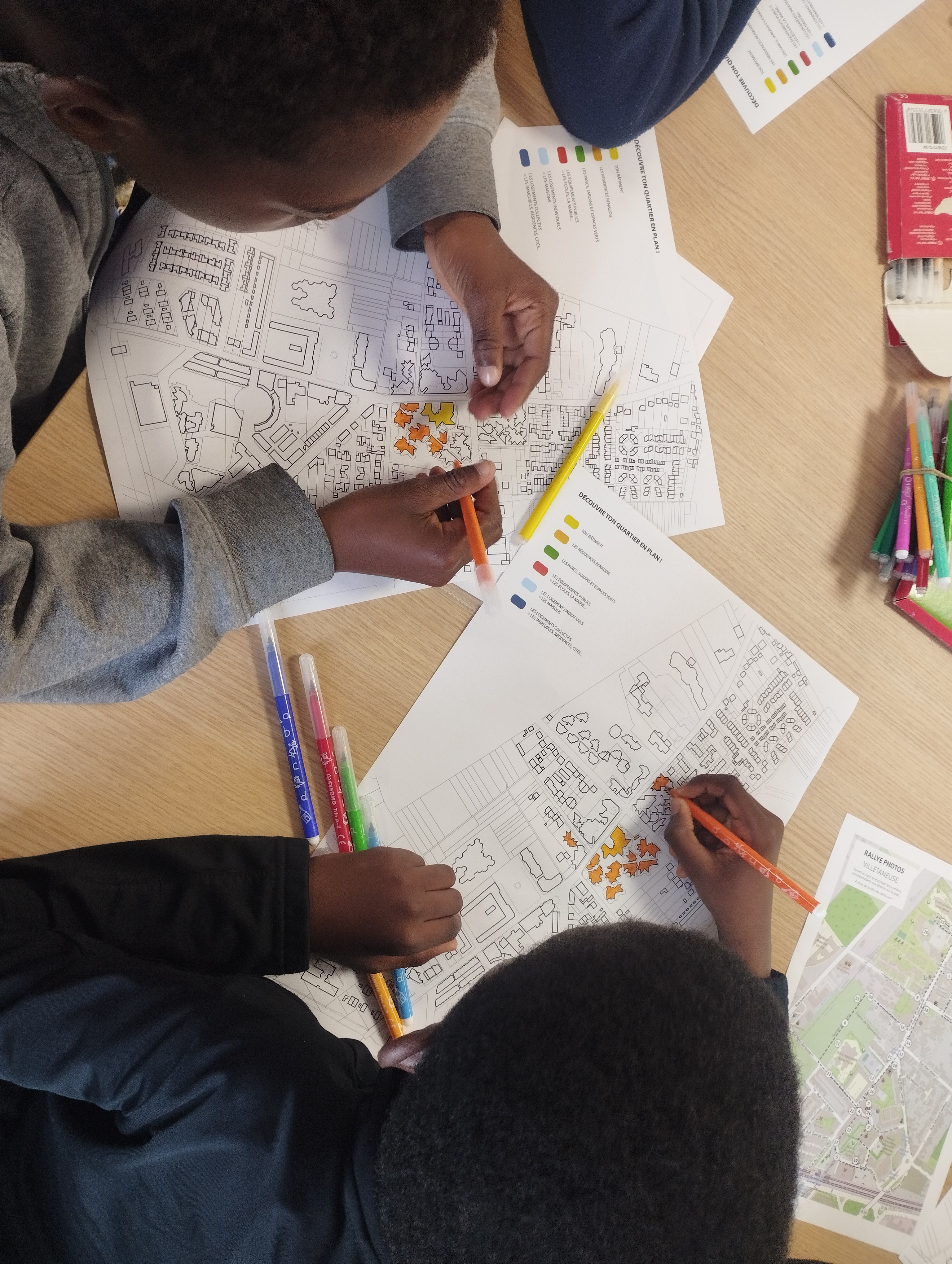 Accompagné·e·s par deux architectes, les enfants ont participé à des activités variées : balade urbaine, rallye photo, dessin, collage, construction de maquettes, etc. La semaine s’est achevée le vendredi après-midi par une restitution du travail réalisé auprès des parents et des acteurs du territoire.